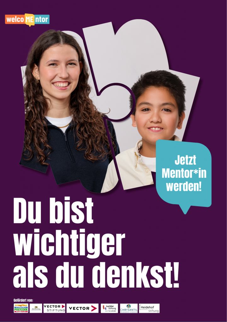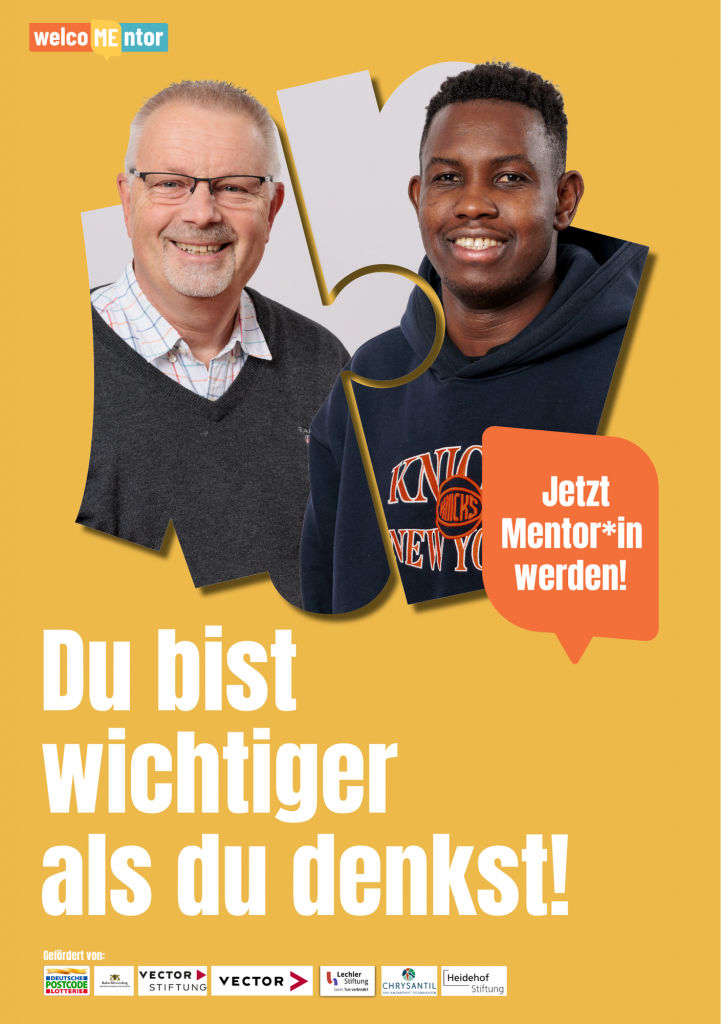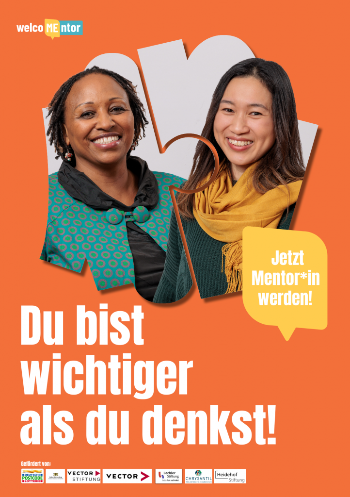 welcoMEntor ist ein Zusammenschluss von verschiedenen Mentoring-Programmen in Stuttgart. Initiiert wurde das Projekt von der Bürgerstiftung Stuttgart. Es wurde am Runden Tisch entwickelt, gemeinsam mit Akteur:innen aus der Bürgerschaft, Wirtschaft und Verwaltung. Eine Liste der Teilnehmenden des Runden Tischs findet sich in den FAQ.