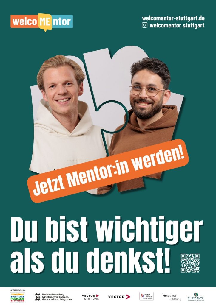 Schon 1-3 Stunden pro Woche können einen großen Unterschied machen – für dich und für Stuttgart! Werde Teil von welcoMEntor und hilf mit, Vorurteile abzubauen und ein starkes, offenes Miteinander zu fördern.